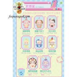 Peluche surprise, attribution aléatoire en "blind box" dans la collection illustrée avec une carte d'identité