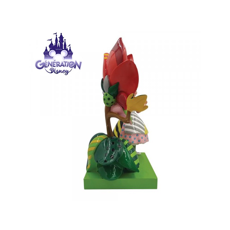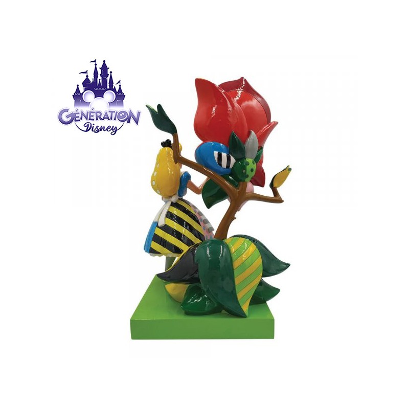 Avec des couleurs audacieuses et des motifs fascinants, l'artiste pop contemporain Romero Britto capture le plaisir et la fantaisie de Disney. Redessinant une scène d'Alice au pays des merveilles, Alice salue une rose parlante avec une grâce étincelante.