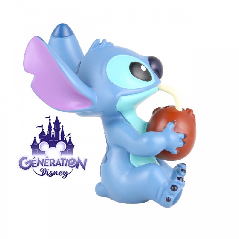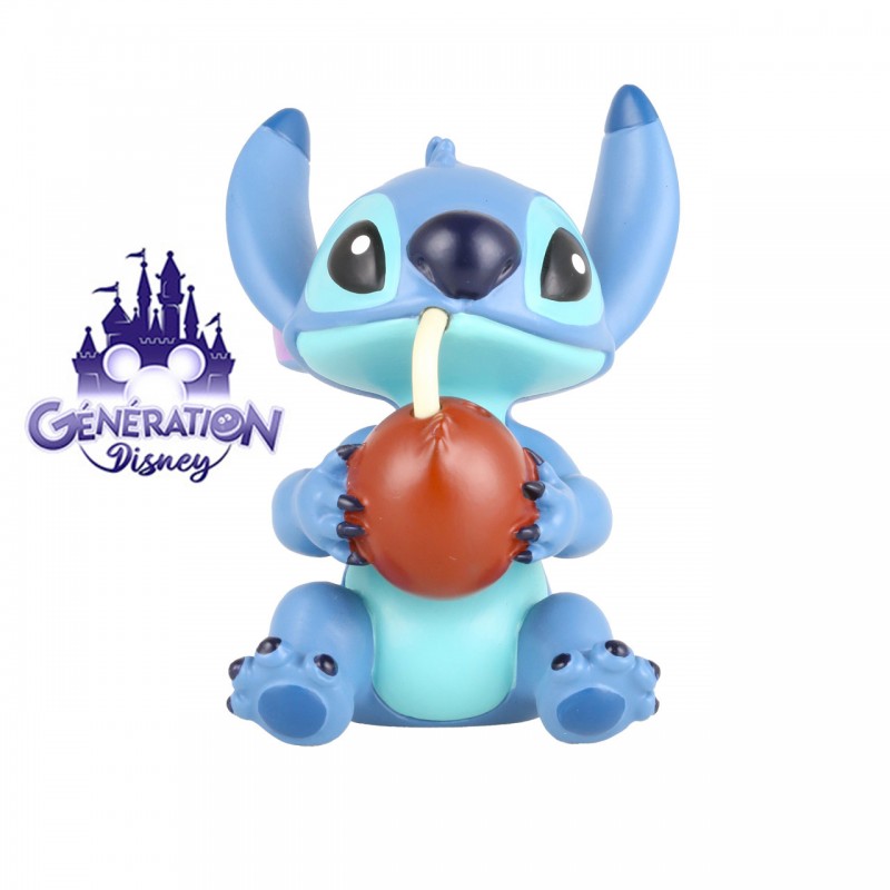 Stitch, l'extraterrestre préféré de tous, prend du bon temps. Il se régale en sirotant une bonne noix de coco.