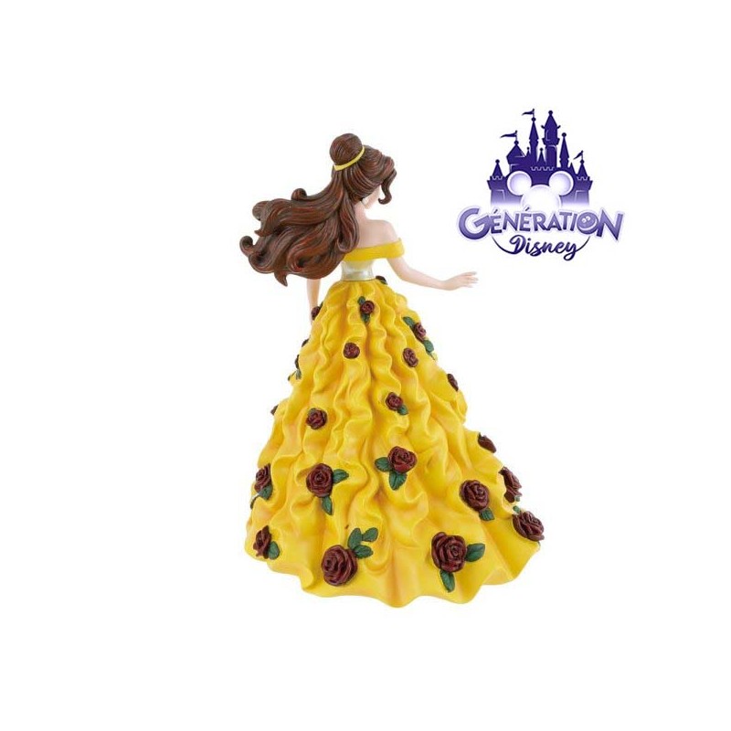 Figurine de la princesse Belle comme vous ne l’avez jamais vue auparavant. Dans sa robe de bal jaune emblématique avec des roses en 3 dimensions rouge foncé en cascade sur sa robe. La finition irisée crée un bel éclat... digne d’une princesse.