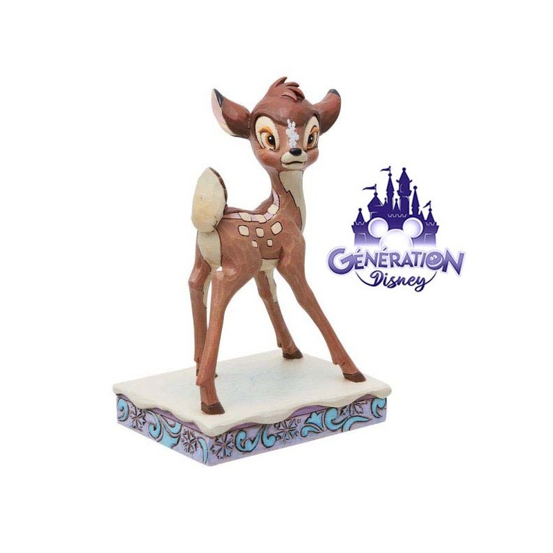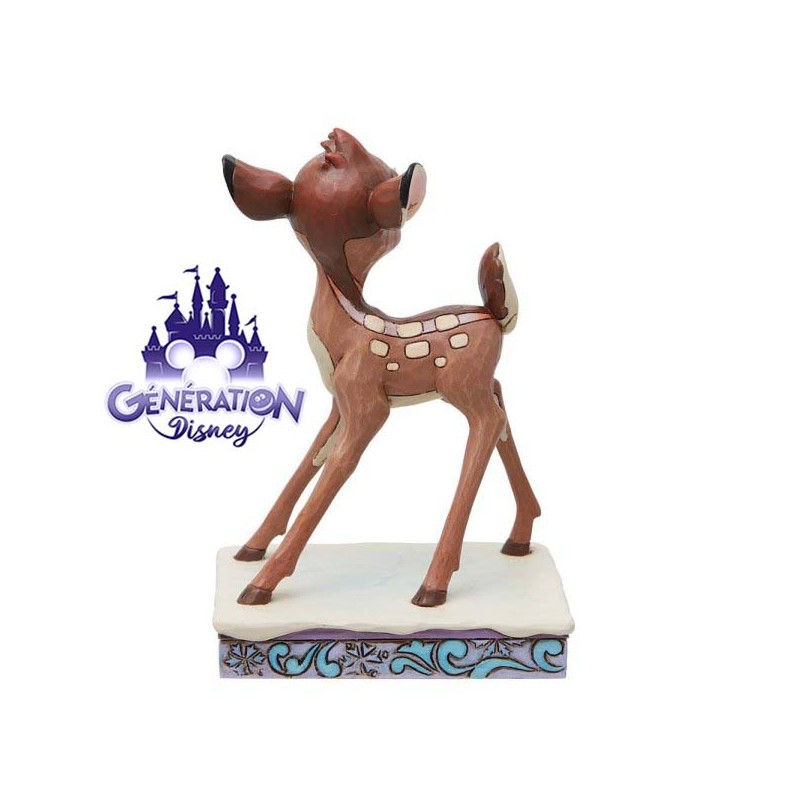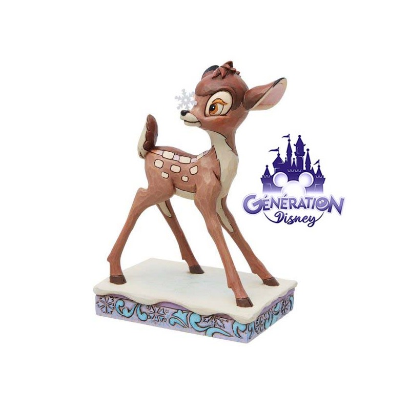 Figurine de Bambi gardant un flocon en équilibre sur son nez.