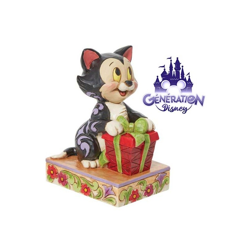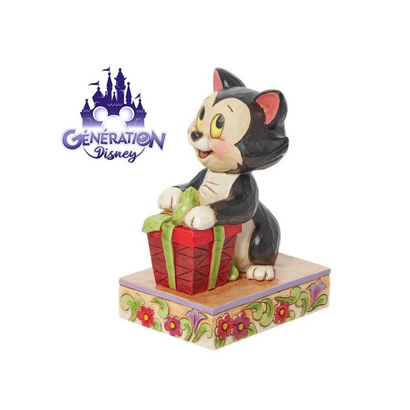 Figurine de Figaro, le chat de Gepetto, attendant impatiemment l'ouverture de son cadeau.