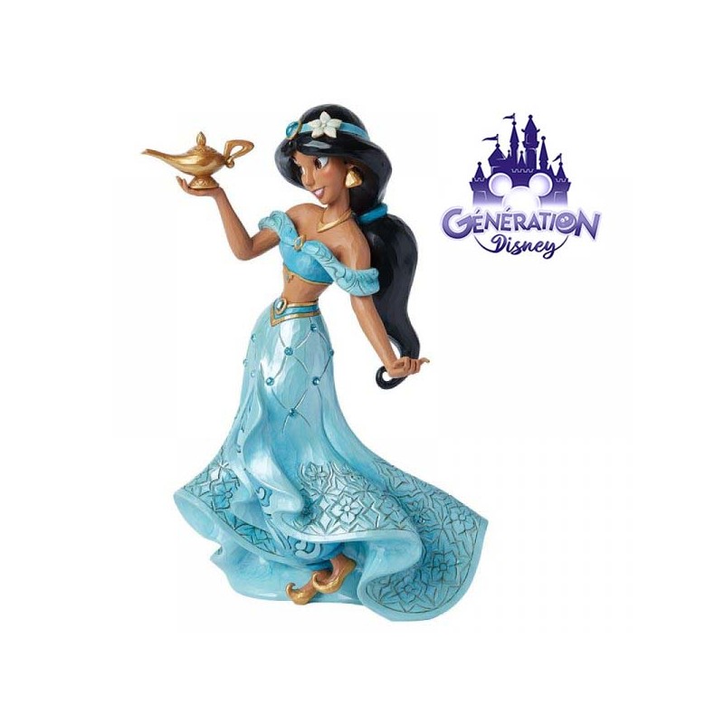 Un chef-d'œuvre de luxe représentant la princesse Jasmine du film Aladin de Disney. Peint et sculpté à la main, décoré de bijoux et rempli de détails complexes. Parfait pour tout collectionneur de Disney Traditions.