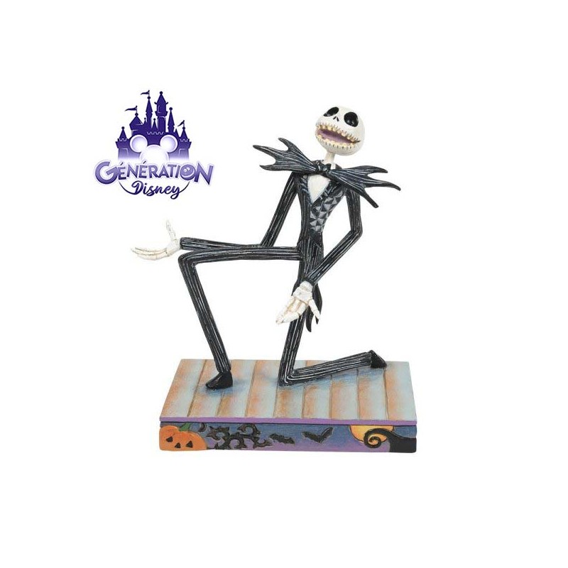 Jack Skellington est agenouillé dans son emblématique costume à rayures noires et blanches et son nœud papillon de chauve-souris. C'est le complément idéal de toute collection "Nightmare Before Christmas" l'étrange Noel de Monsieur Jack, de Tim Burton.