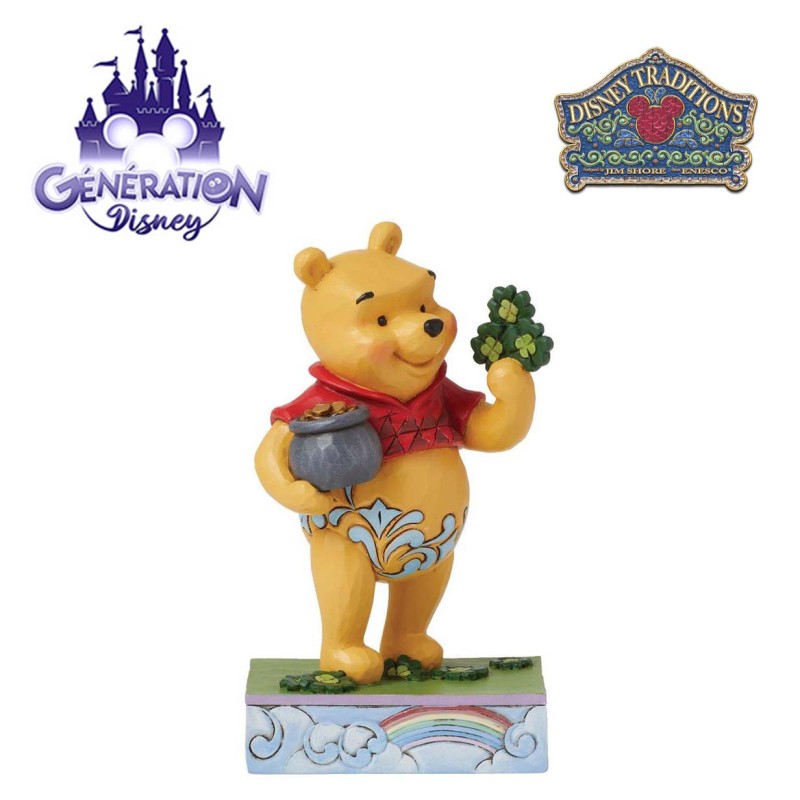 Figurine résine, de Winnie l'ourson avec des trèfles à 4 feuilles porte-bonheur pour la St Patrick !