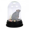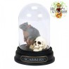 Dans le monde des sorciers, un animagus est une sorcière ou un sorcier ayant la capacité de se transformer en animal et de revenir à sa forme humaine. Peter Pettigrew, l'un des serviteurs les plus fidèles de Voldemort, possède ce don et se cache sous l'apparence du rat de compagnie de Ron, Croûtard. Cette figurine miniature, minutieusement sculptée et peinte à la main, ainsi que le crâne, sont présentés sous un dôme en verre transparent, évoquant les facéties du rongeur sous couverture.