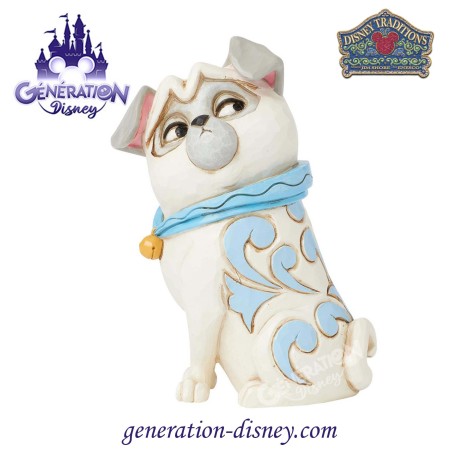 Célébrez le 30e anniversaire de Pocahontas avec cette charmante figurine de Percy, le Carlin choyé de Ratcliffe, réalisé par Jim Shore. Avec son expression impertinente, il porte un collier bleu avec une cloche et arbore la rosace complexe de l'artiste.