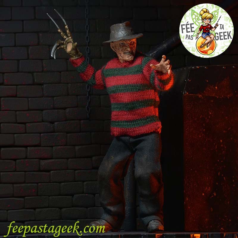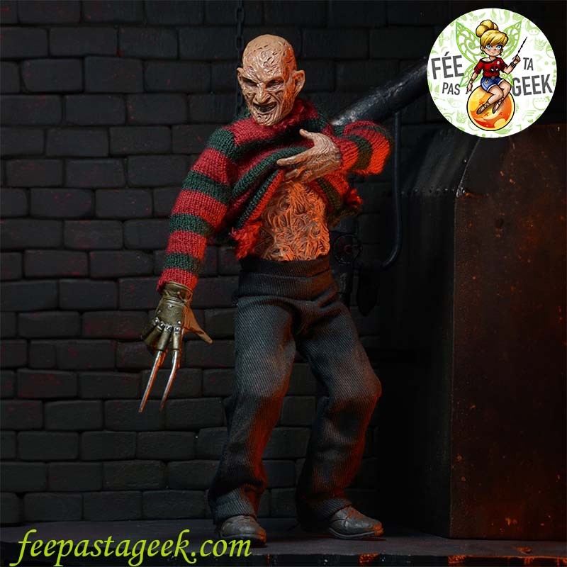 Figurine articulée en pvc et avec vêtements tissu, donnant à l'horrible Freddy Krueger un réalisme qui vous plongera dans l'univers terrifiant des Griffes de la nuit "Nightmare on Elm Street".
