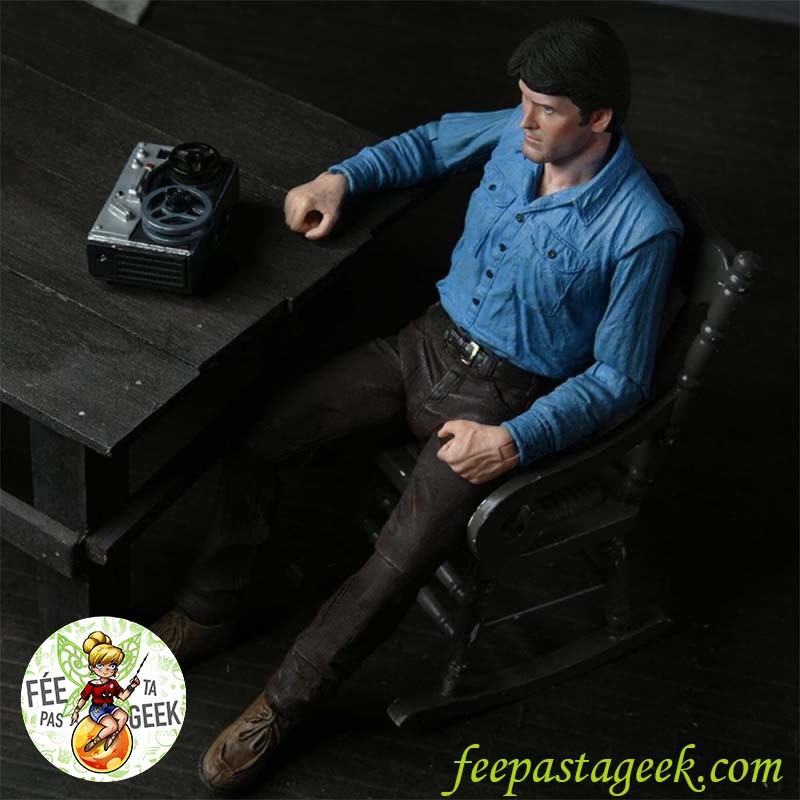 Figurine pvc articulée, en célébration des 40 ans du film culte emblématique The Evil Dead. Cette figurine représente fidèlement Bruce Campbell et est accompagnée de trois têtes interchangeables, d'une tronçonneuse, d'une hache, d'un fusil de chasse, d'une lanterne, d'un lecteur de cassette, et bien plus encore !
