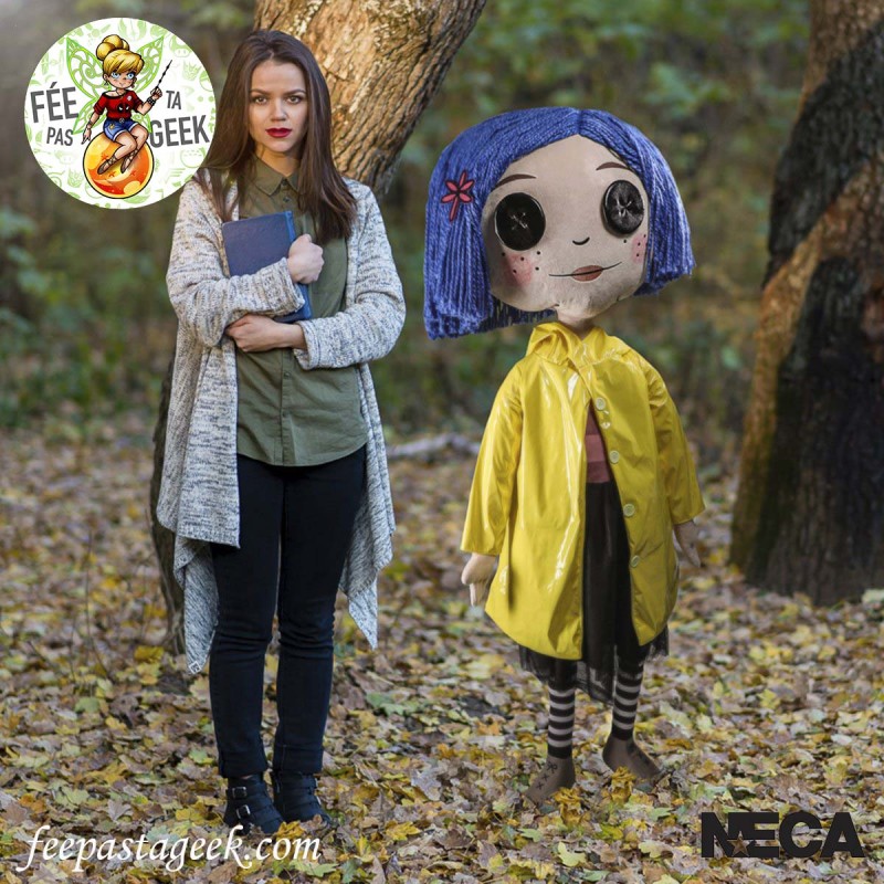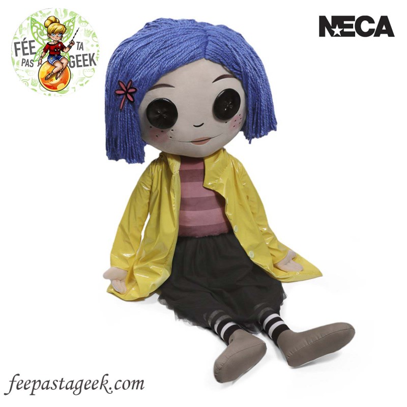 Traversez le couloir et plongez dans l'Autre Monde avec cette peluche grandeur nature de Coraline ! Grâce à sa personnalité curieuse et rebelle, vous serez toujours prêt à affronter la Mère de l’Autre Monde. Revivez toute la magie du film d’animation avec cette peluche grande taille, finement détaillée, qui arbore des cheveux en laine bleue avec une fleur, des yeux en boutons et un joli imperméable jaune. Cette peluche mesure plus de 1,50 m et inclut un support métallique pour l'exposition. Ne convient pas aux enfants de moins de 3 ans (risque d'étouffement dû aux petites pièces).