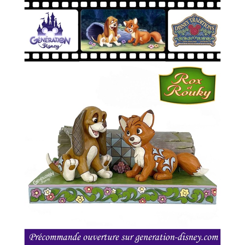 Célébrez l'amitié improbable entre Fox et Hound dans cette charmante scène de Jim Shore. Alors qu'ils s'amusent dans les bois, les emblématiques rosaces, motifs patchwork et détails floraux de Jim Shore donnent vie à cette scène pleine de vie.