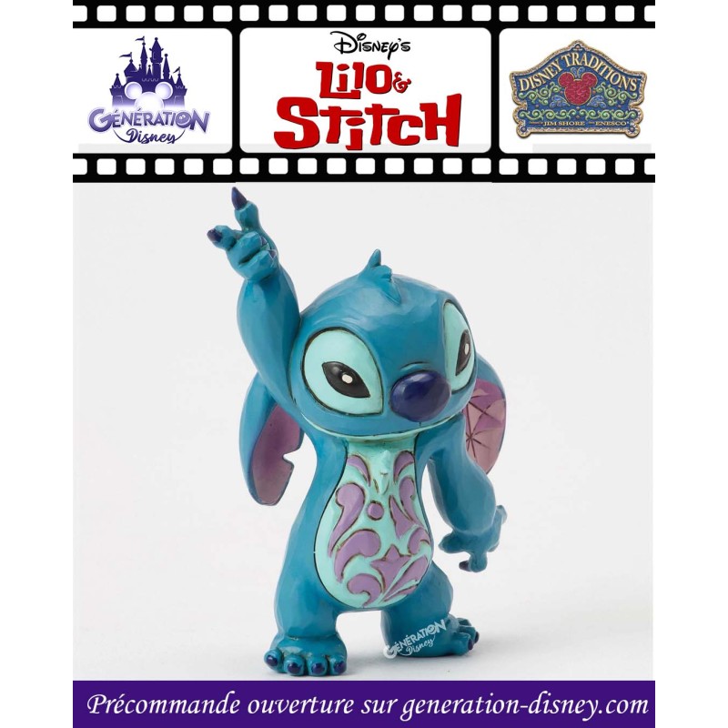 Ce dessin animé de Jim Shore capture l'esprit enjoué de Stitch, qui danse avec des rosaces sur le ventre et des oreilles à motifs. Qu'il s'agisse de hula ou d'Elvis, ses mouvements insouciants sont pleins de charme et d'espièglerie.