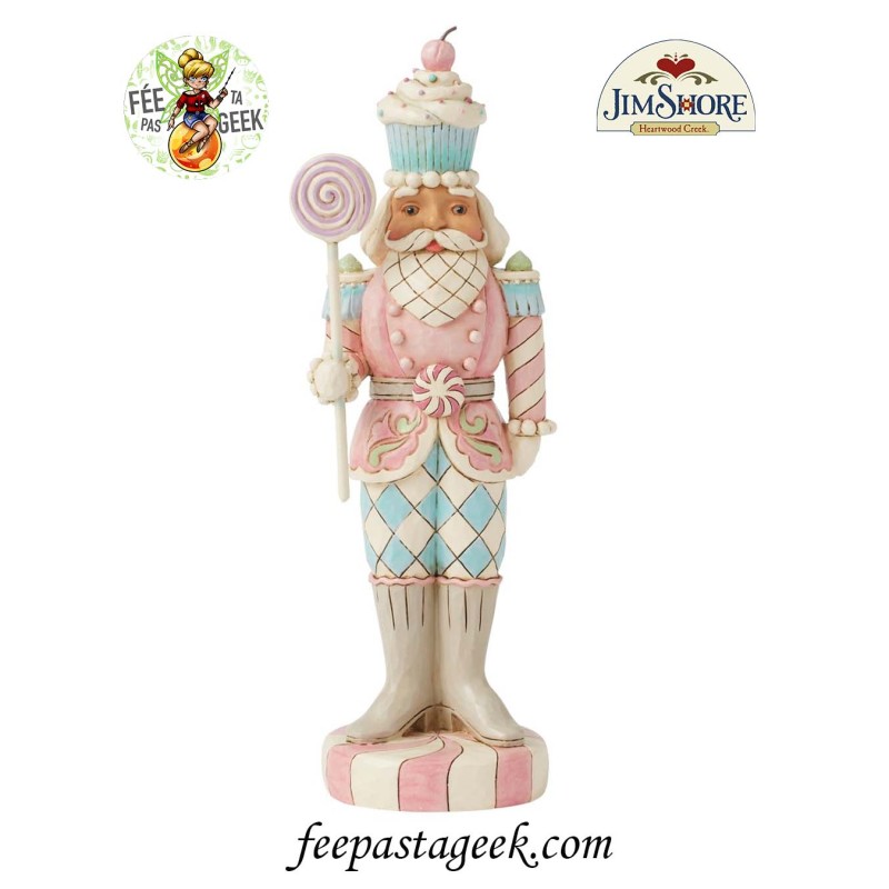 Cette figurine d'un soldat en jouet de la collection Heartwood Sweets, conçu par Jim Shore, se tient fièrement sur une base en menthe poivrée, tenant une canne en forme de sucette. Avec son uniforme orné de glaçage et de bonbons, complété par une boucle de ceinture en menthe poivrée et un charmant chapeau en forme de cupcake, il apporte une touche de joie festive