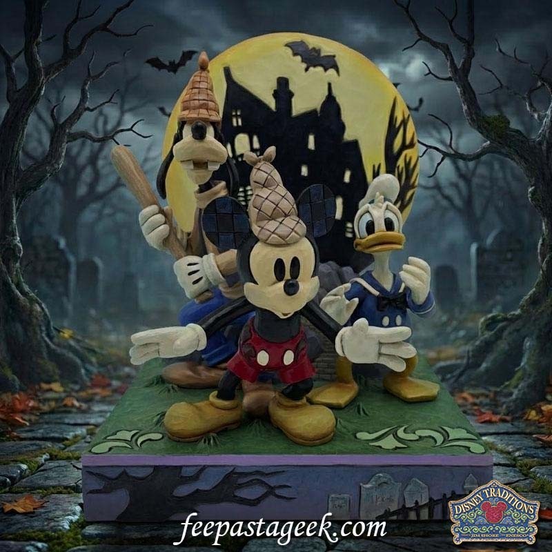 Diorama en résine de Mickey et ses amis Donald et Dingo dans le dessin animé "Les revenants solitaires" film de 1937.
