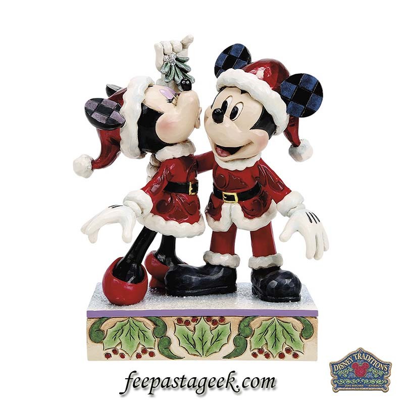 "Mickey and Minnie Mistletoe" Minnie embrassant Mickey sous le gui en tenu de Noel !