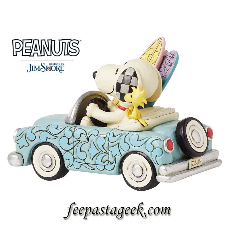 Figurine Snoopy et Woodstock "Surfboard car" by Jim Shore - préco