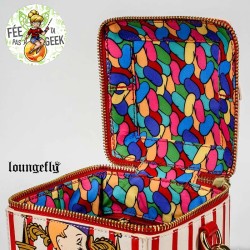 Les caractéristiques du sac à bandoulière comprennent des ferrures métalliques argentées brillantes, une lanière réglable, du cuir végétalien (polyuréthane), des détails imprimés.